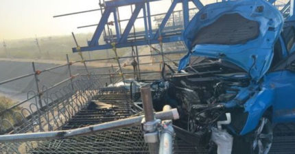 台61線嚴重車禍!奧迪自撞飛上9m高架橋 瞬間「斬首解體」駕駛當場身亡現場曝