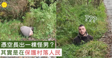 路邊有一棵怪男?只剩頭露出來 原來是為「保護大家」的暖心行為