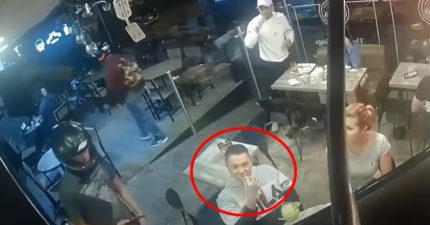影/舉槍闖餐廳搶劫!淡定男邊遞錢包「邊啃雞翅」搶匪嚇傻