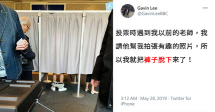投票投到「脫褲」?半件直接拉到腳踝….後面阿公也看傻