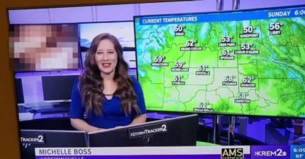 氣象播報背後驚現「辣妹露骨片」 主播繼續講民眾看傻